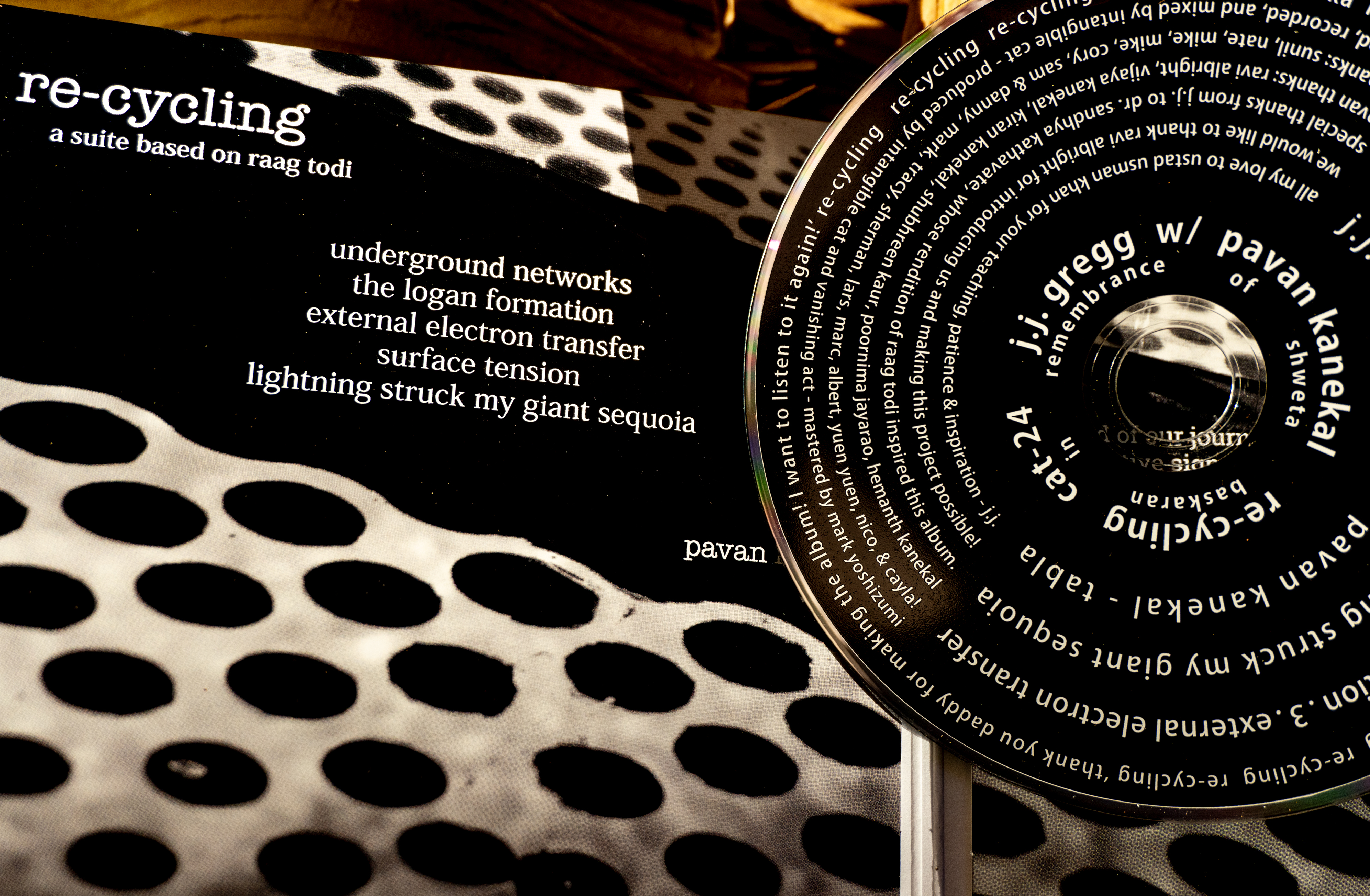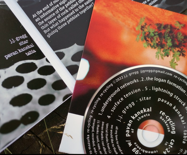 In JJ Gregg’s new album, ‘re-cycling,’ (August 2022) is an exploration of interconnectedness both sonically and in the natural world. This album features exploratory solo sitar, playful duets with tabla player Pavan Kanekal, and an experimental track that will make your head spin.